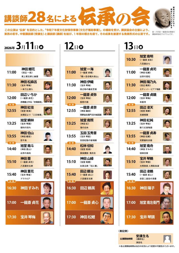 【3月新宿講談会 昼席/夜席・広小路亭講談会】