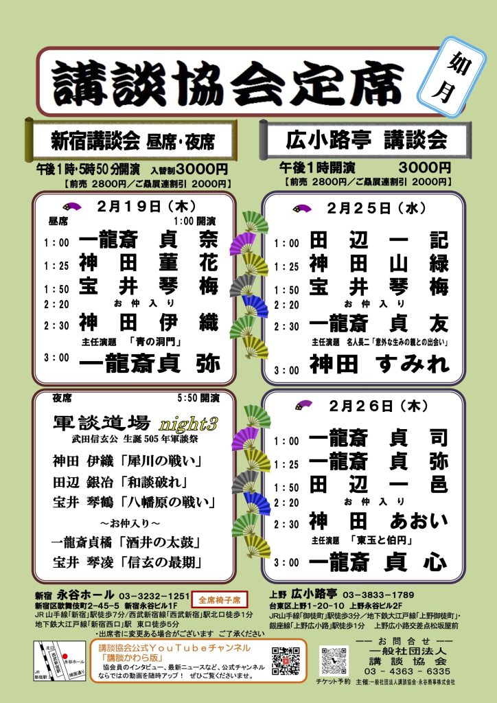 【2月新宿講談会 昼席/夜席・広小路亭講談会】