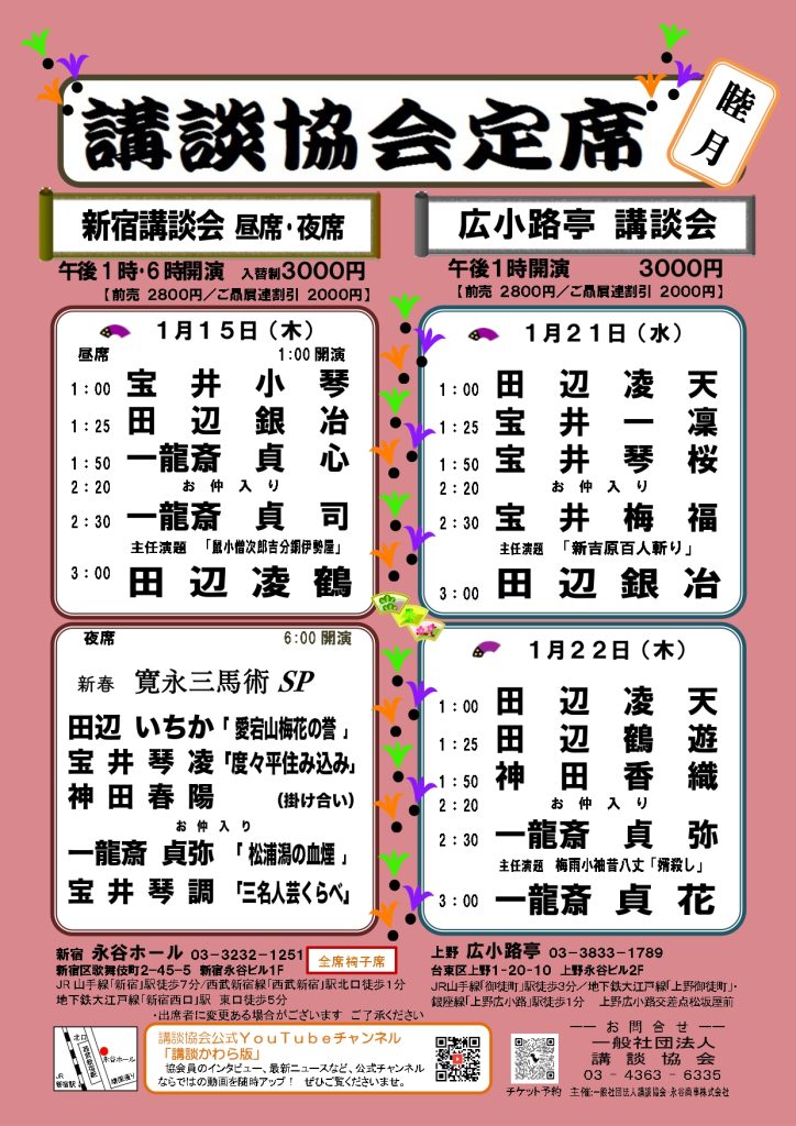 【1月新宿講談会 昼席/夜席・広小路亭講談会】