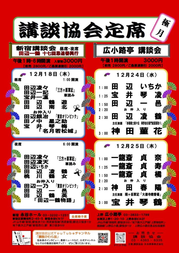 【12月新宿講談会 昼席/夜席・広小路亭講談会】