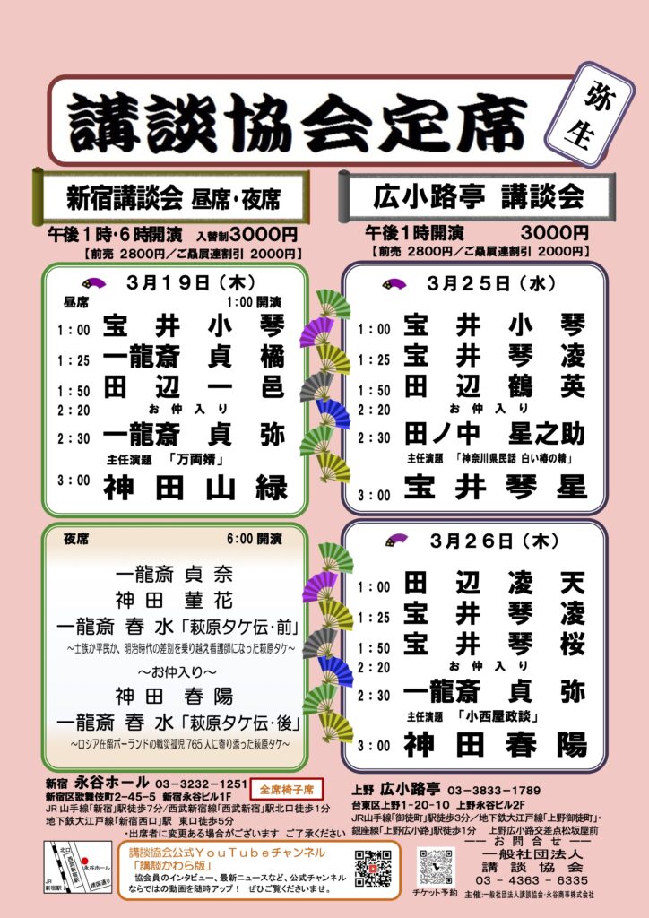 【3月新宿講談会 昼席/夜席・広小路亭講談会】